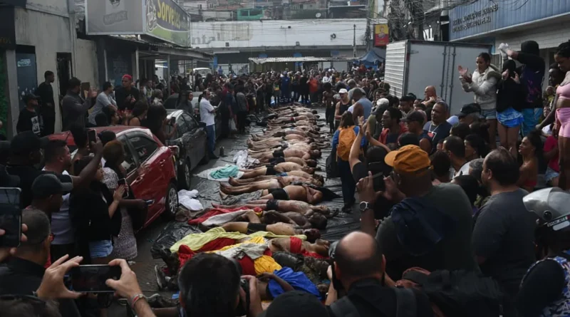 Mais de 60 corpos são enfileirados em praça após megaoperação no Rio